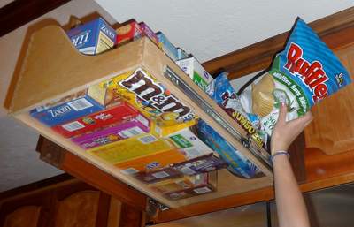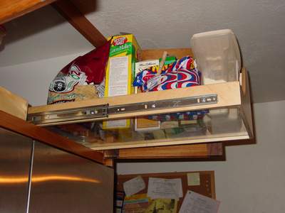 above the fridge, oven, or in the top of a deep pantry cabinet. They are